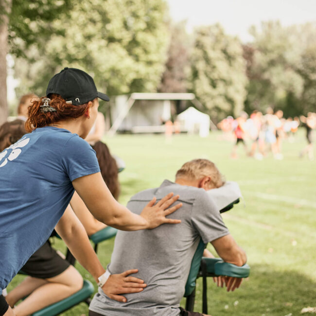 Im Food Village können sich Teilnehmer:innen beim Mittagessen stärken, gemeinsam entspannen und neue Energie tanken.